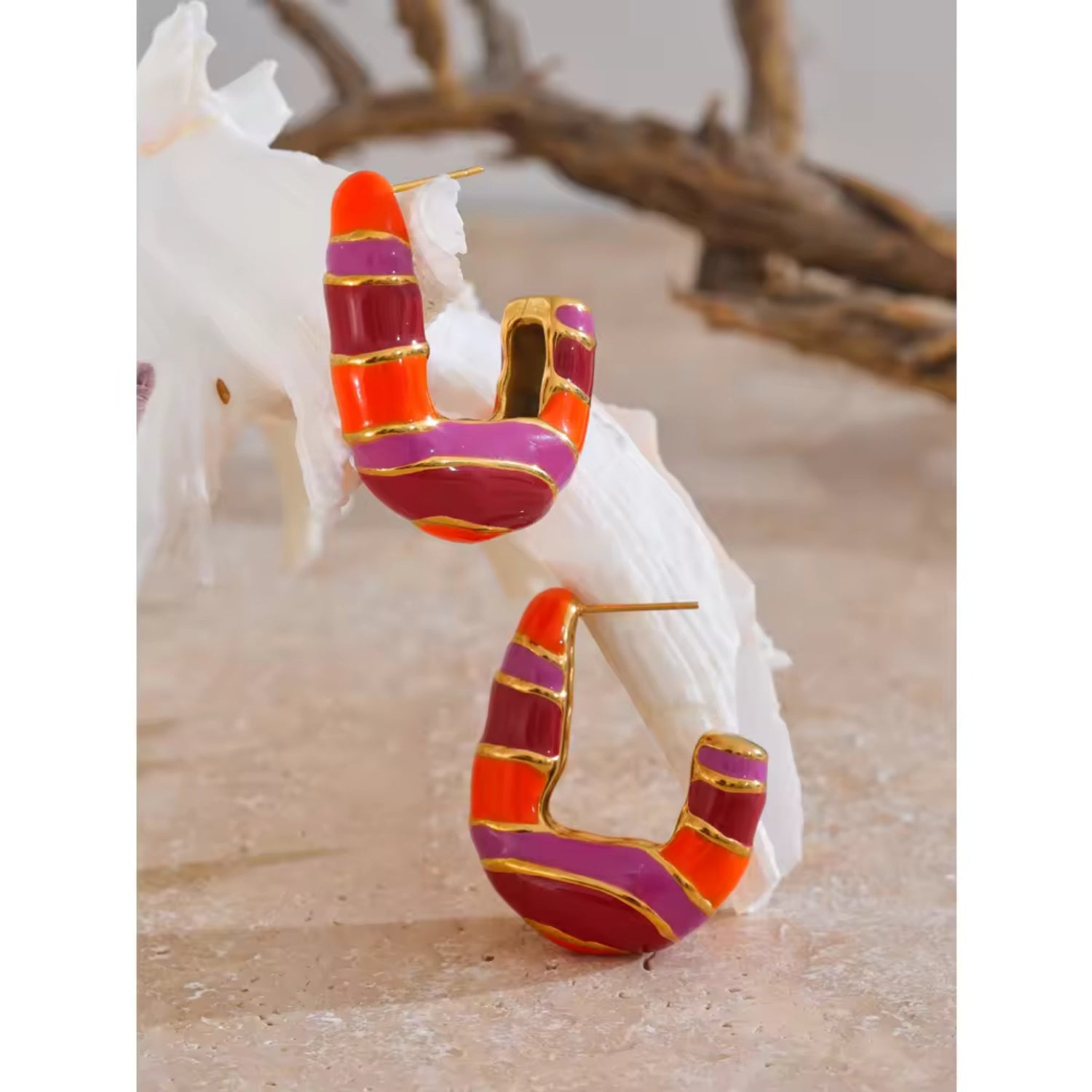 Turn heads with these statement earrings, designed with bold stripes of radiant color and a golden touch. Perfect for adding a playful twist to any outfit