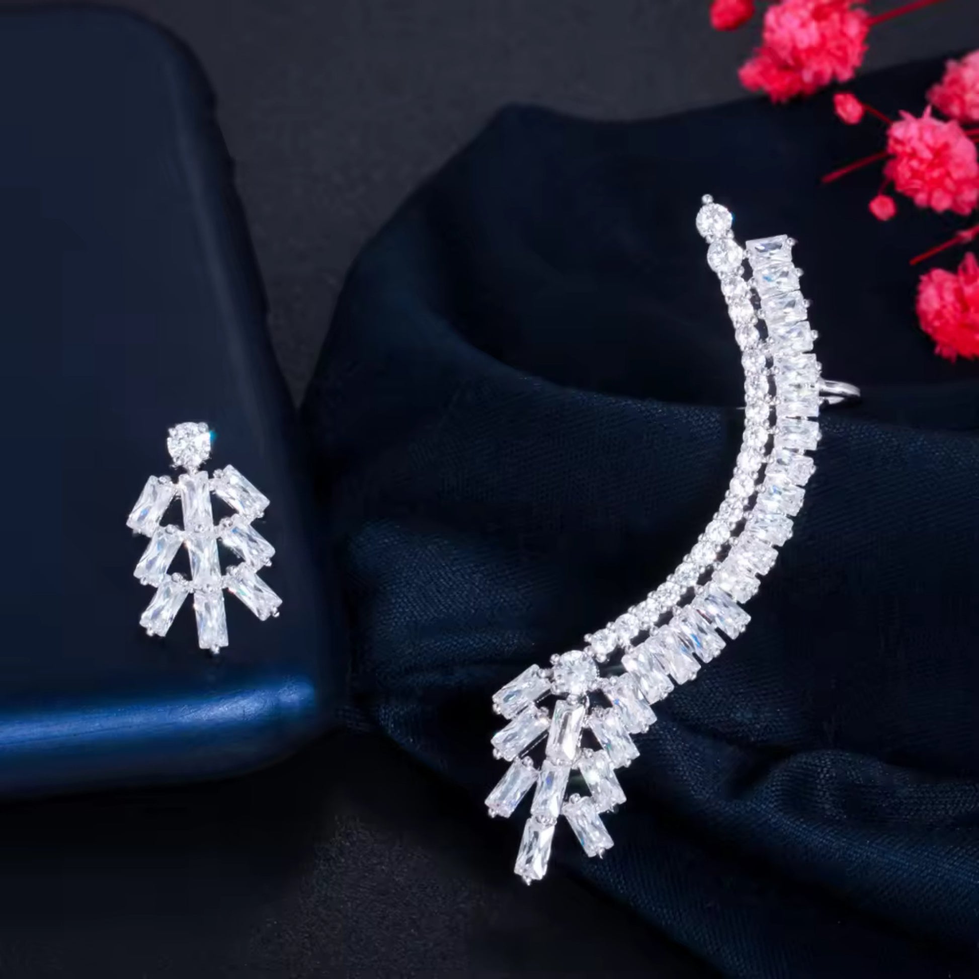 أقراط أذن متسلقة من الزركونيا غير المتماثلة بتصميم مشع