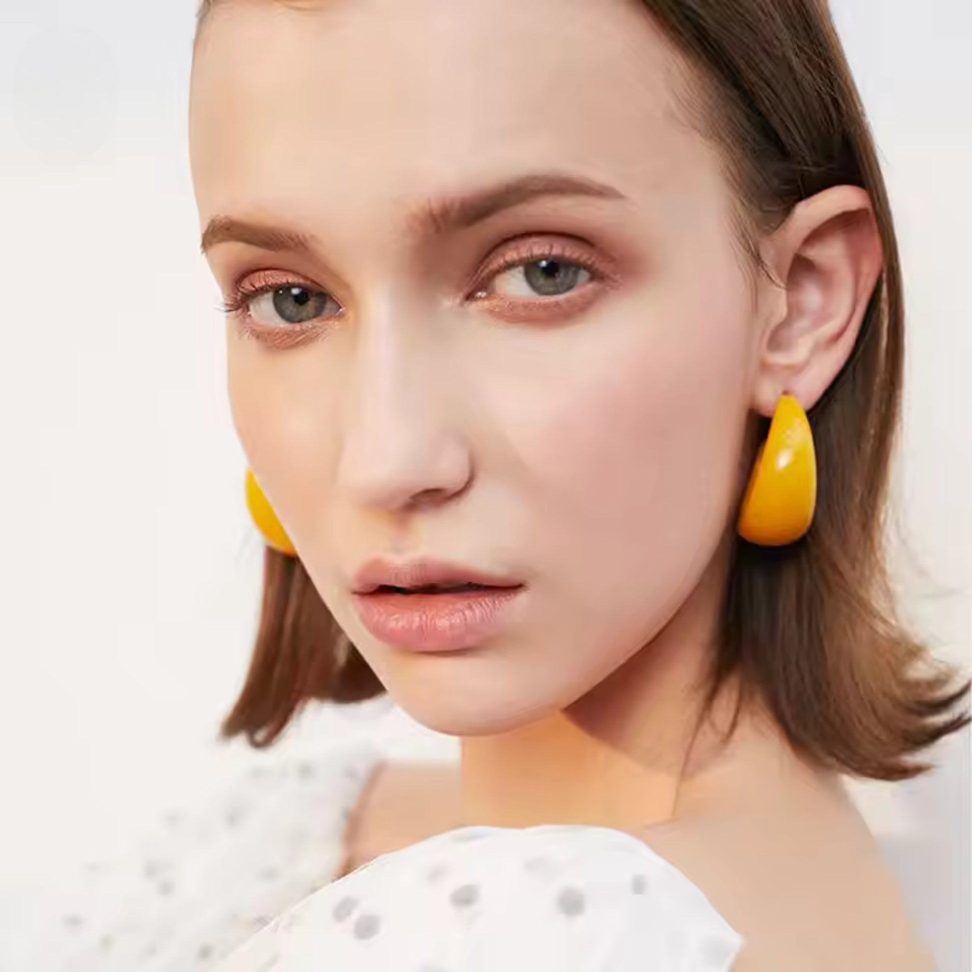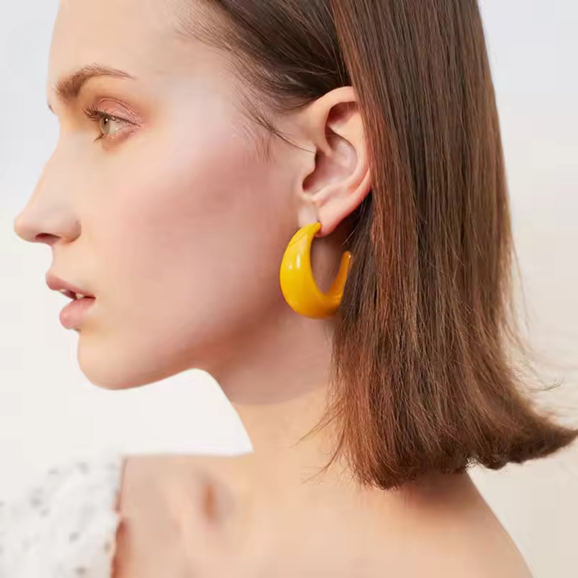 أقراط أكريليك عصرية على شكل هلال أصفر