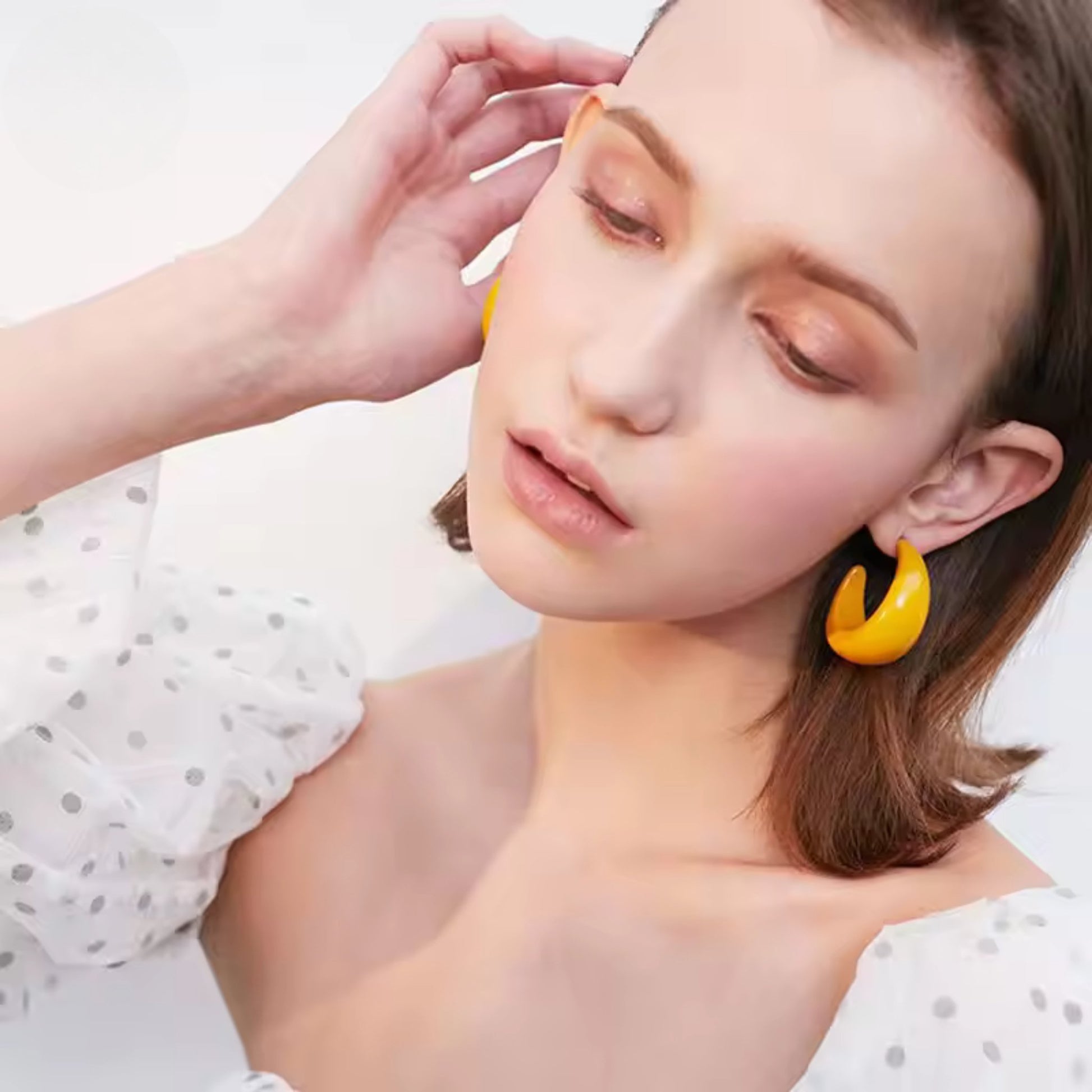 ارتقِ بأسلوبك مع هذه الأقراط العصرية المصنوعة من الأكريليك على شكل هلال أصفر. صُنعت هذه الأقراط من الراتينج عالي الجودة، وهي مصممة على شكل هلال فريد، مما يضيف لمسة من الأناقة العصرية إلى مجموعة إكسسواراتك. مثالية للنساء اللاتي يعشقن مواكبة الموضة، هذه الأقراط خفيفة الوزن مريحة وأنيقة، مما يجعلها إضافة متعددة الاستخدامات لأي خزانة ملابس.