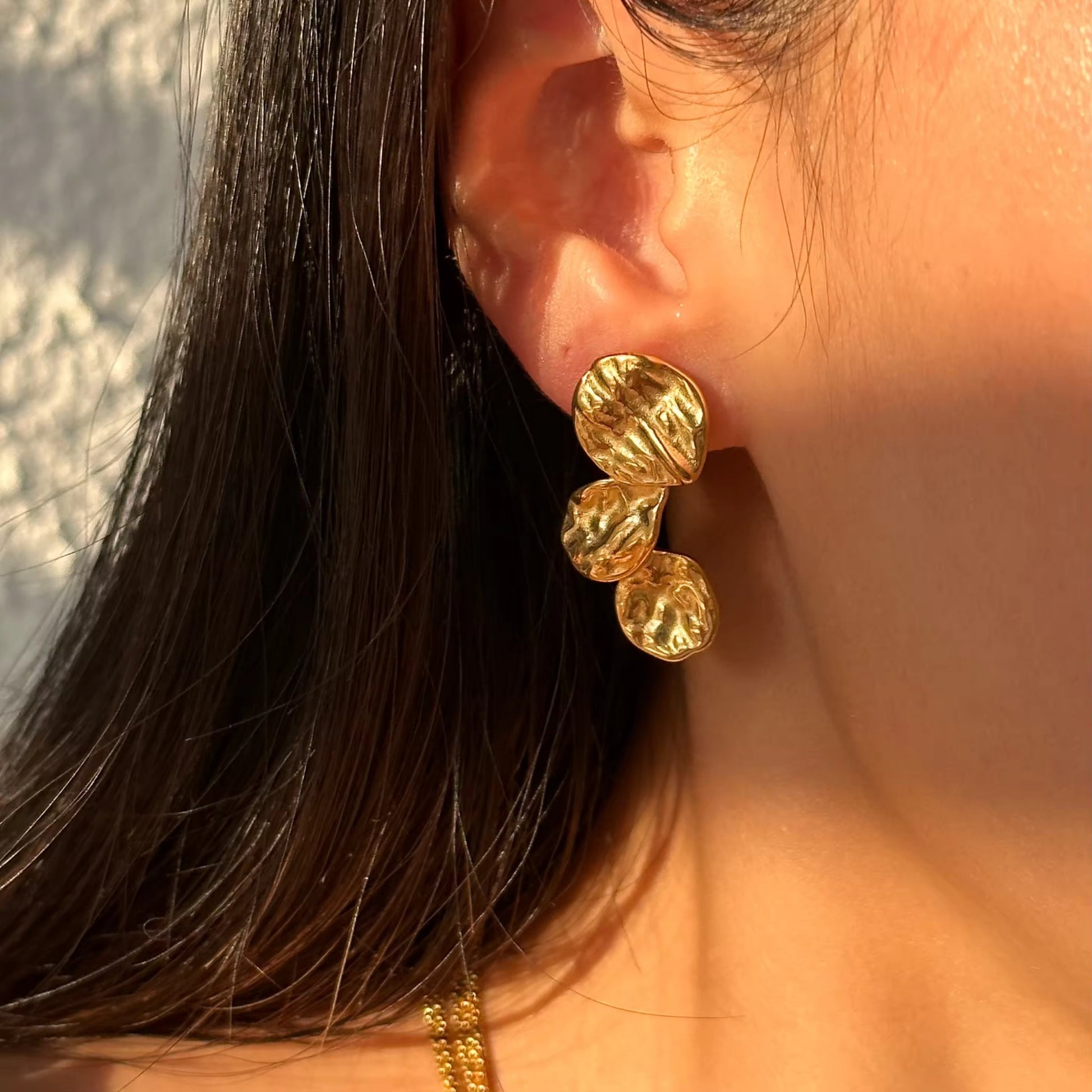 - اللمسة النهائية: طلاء الذهب عيار 18 قيراطًا يضيف توهجًا دافئًا وفخمًا للأقراط.