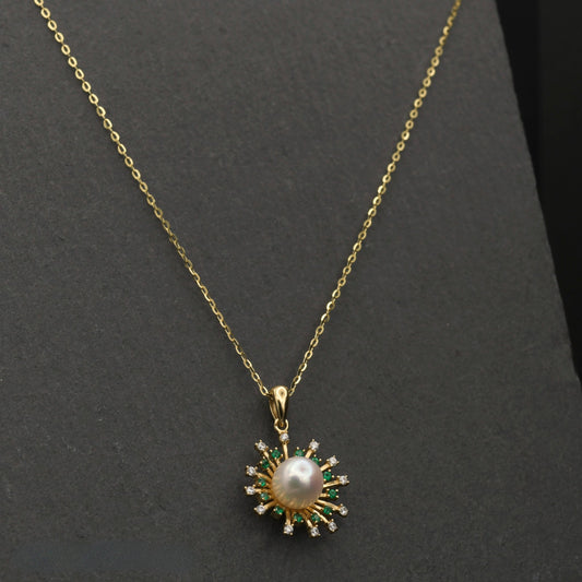 Sunrise Elegance 18K Gold Plated Sterling Silver Pearl Necklace