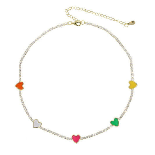 Colorful Heart Zircon Tennis 18K Gold Plated Necklace