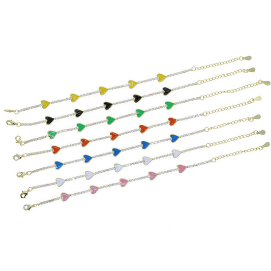 Enamel Heart Gold Plated Bracelet with CZ Stones