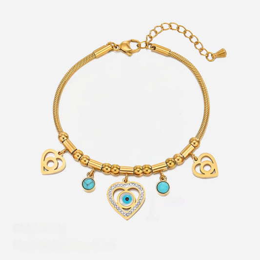 Golden Heart & Evil Eye Charm 18K Gold Plated Bracelet