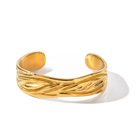 Regal Wave 18K Gold Plated Stainless Steel Cuff Bracelet