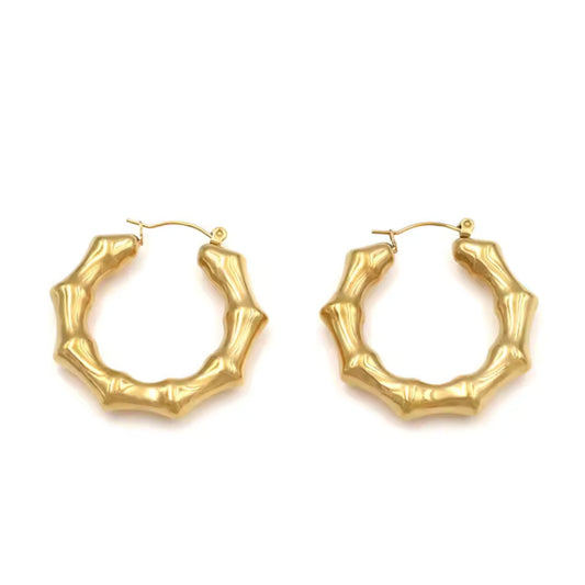 Bamboo Twist Hoop 18K Gold Plated Earrings