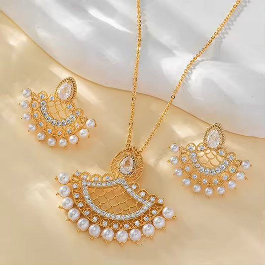 Elegant Fan-Shaped Pearl Necklace and Earring Set