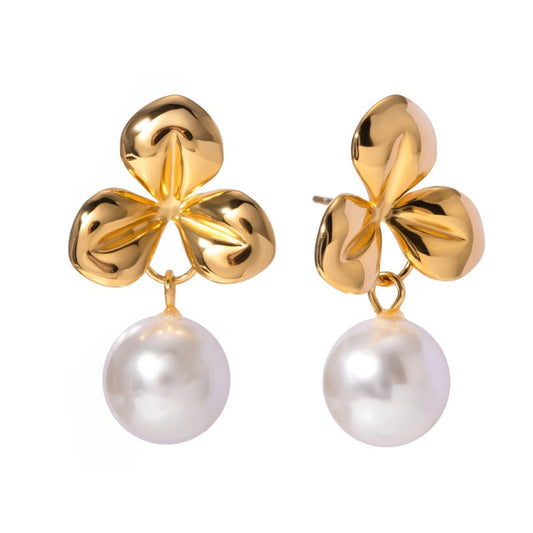 Golden Blossom Pearl Drop 18K Gold Plated Earrings