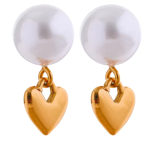 Golden Heart Pearl Drop 18K Gold Plated Earrings