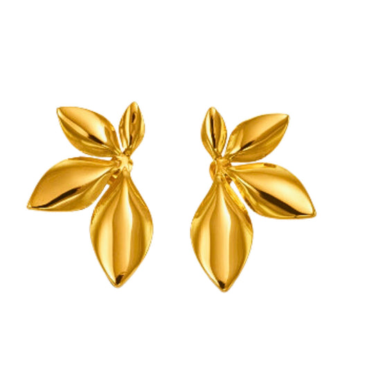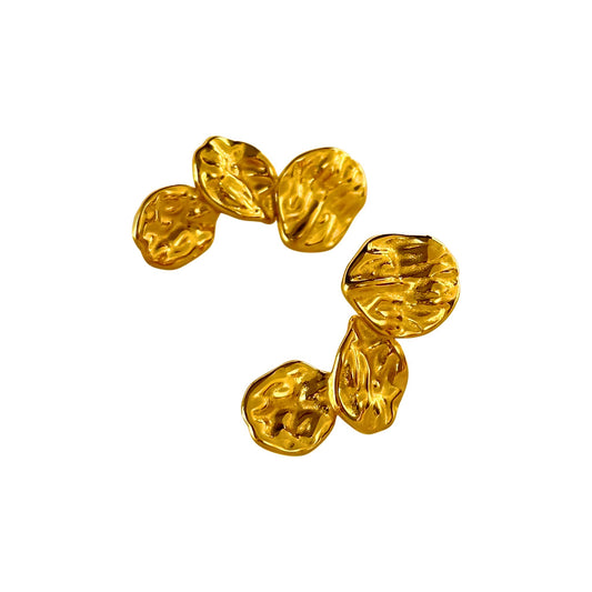 Vintage Petal Embossed 18K Gold Plated Earrings