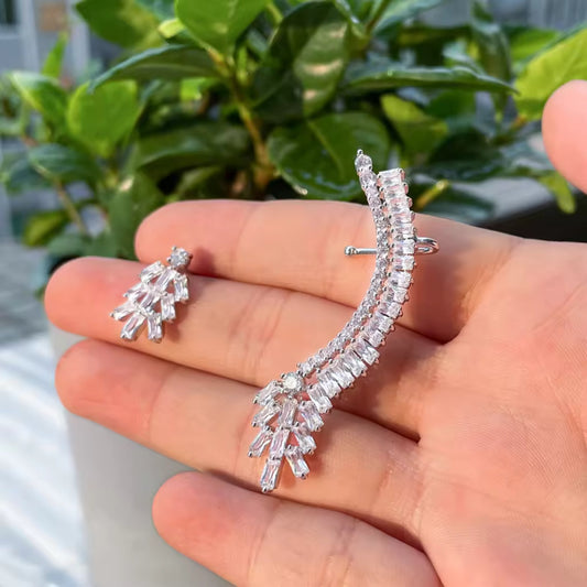 Radiant Sweep Asymmetrical Zirconia Ear Climber Earrings