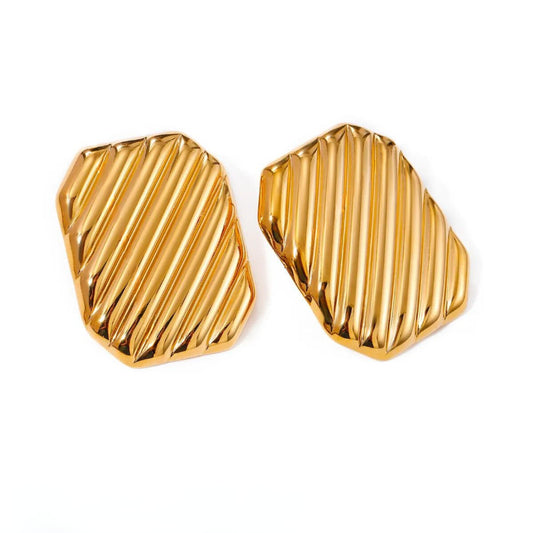 Textured Geometric Stainless Steel Statement 18K Gold Plated Earring