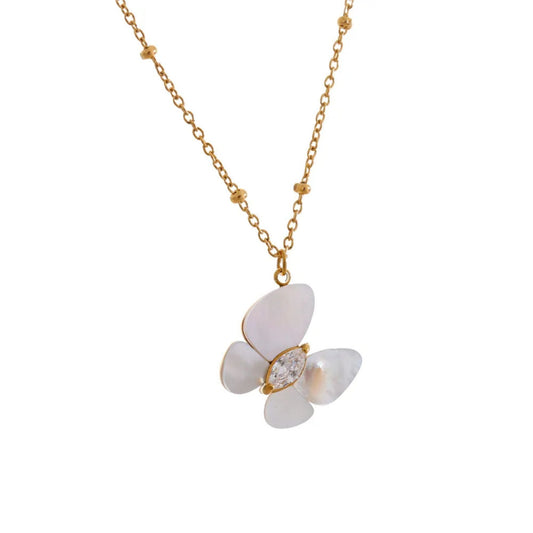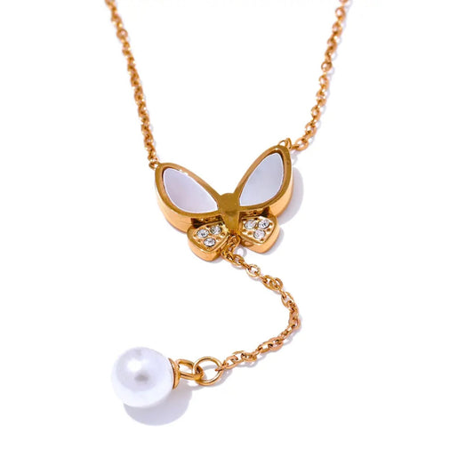 Elegant Butterfly 18K Gold-Plated Necklace with Pearl Drop