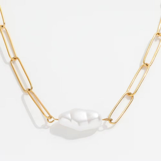 Modern Elegance Baroque Pearl Necklace - 18K Gold Plated with Paperclip Chain