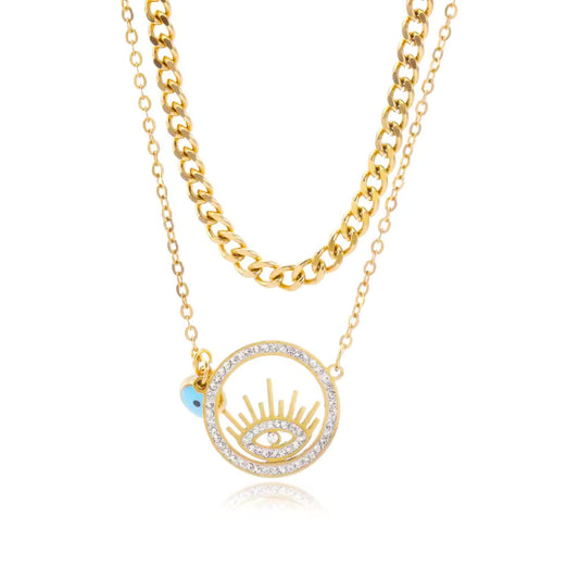 Radiant Eye Dual-Layer 18K Gold Plated Necklace
