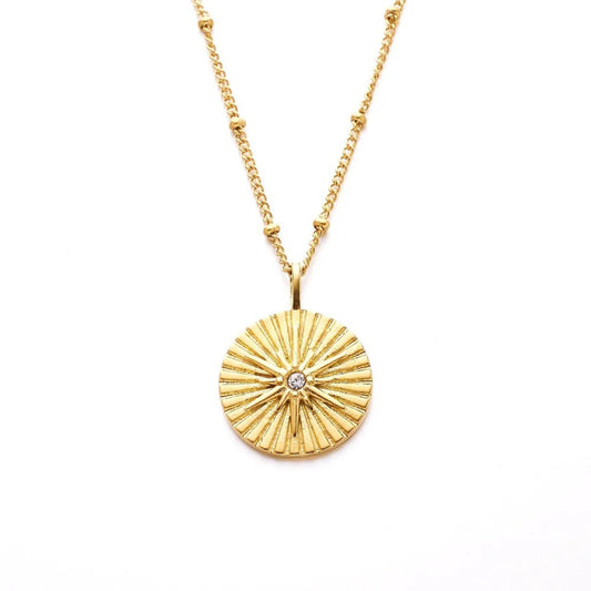 Sun Pendant Beaded Chain 18K Gold Plated Necklace