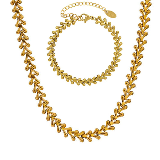 Vina Leaf Necklace and Bracelet 18K Gold Plated Set