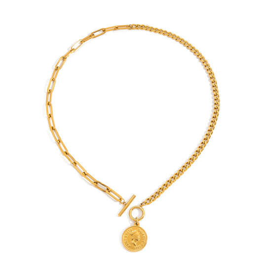 Roman Coin Chain Necklace – 18K Gold Stainless Steel