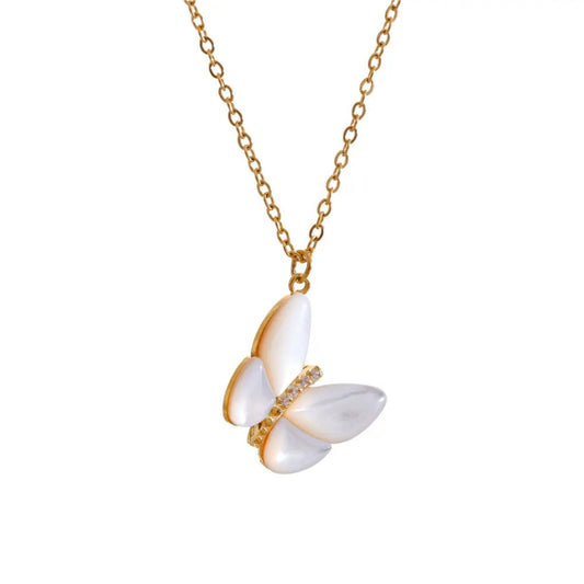 Gold-Plated Butterfly 18K Gold Plated Necklace with Natural Shell & Zircon