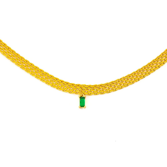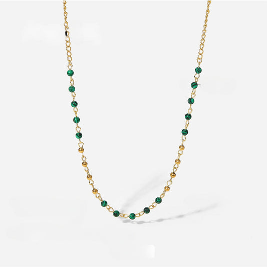 Green Beaded Gold Chain 18K Gold Plated Necklace