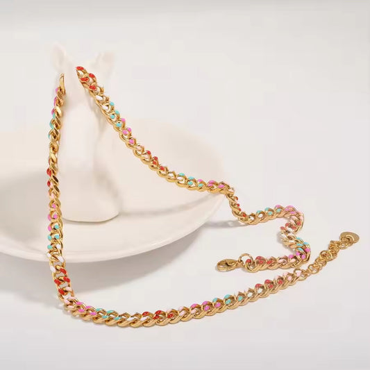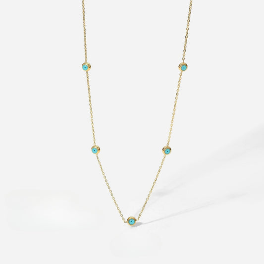 Minimalist Turquoise Dotted Chain 18K Gold Plated Necklace