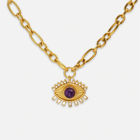 Purple Zircon Eye of Prophecy 18K Gold Plated Necklace