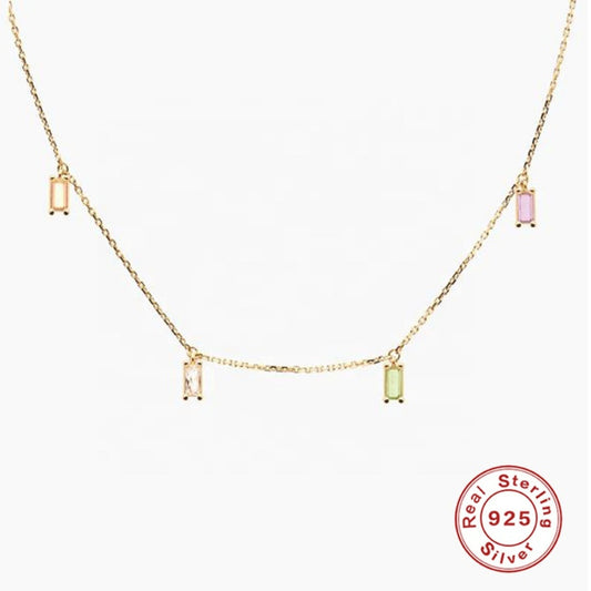 Rainbow Rectangle 18K Gold Plated Sterling Silver Necklace