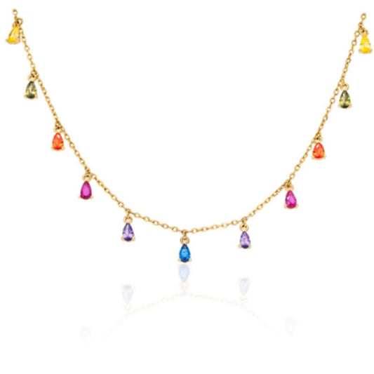 Rainbow Teardrop 18K Gold Plated Sterling Silver Necklace