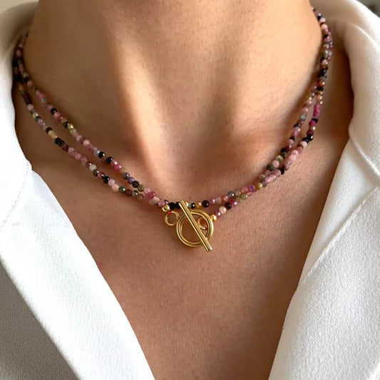Bohemian Multi-Stone Pendant 18K Gold Plated Necklace