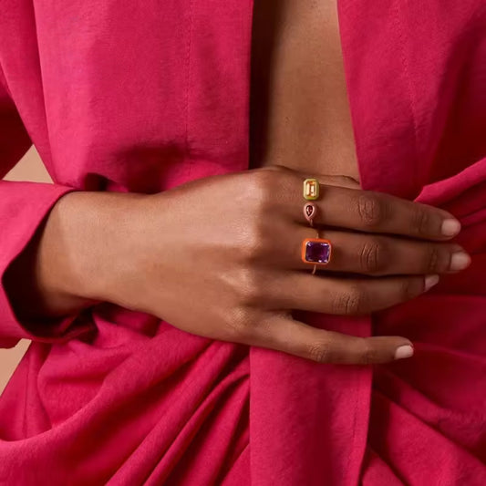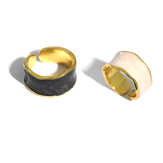 Enamel Duo Gemstone 18K Gold Plated Ring