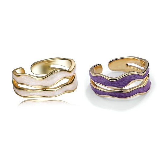Ocean Wave Adjustable 925 Sterling Silver 18K Gold Plated Rings