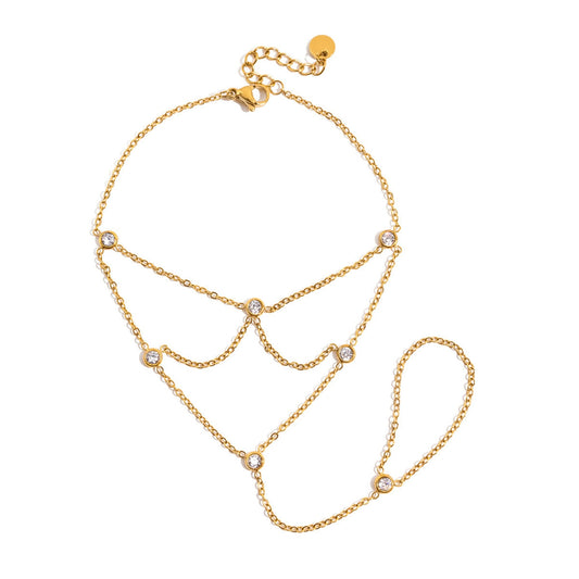 Crystal Chain Hand Bracelet – 18K Gold Stainless Steel Slave Bracelet