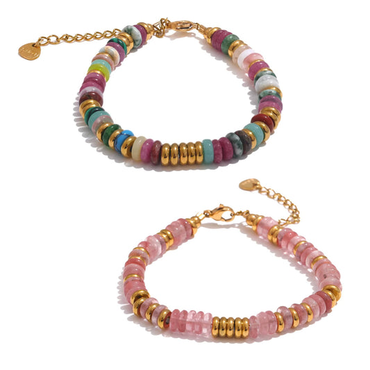 Ethnic Style Natural Stone 18k Gold-Plated Beaded 18K Gold Plated Bracelet