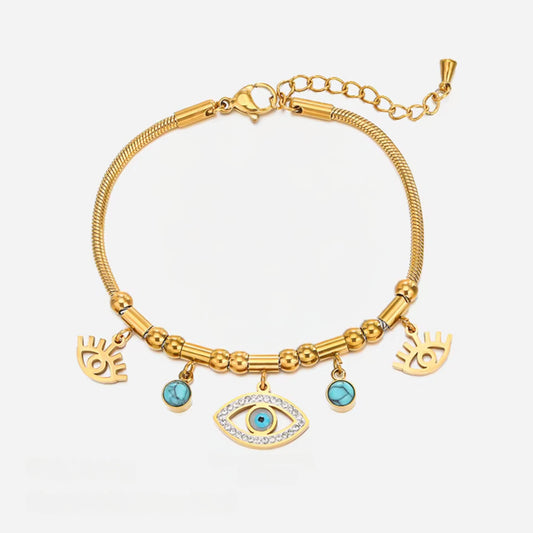 Mystical Evil Eye Charm 18K Gold Plated Bracelet