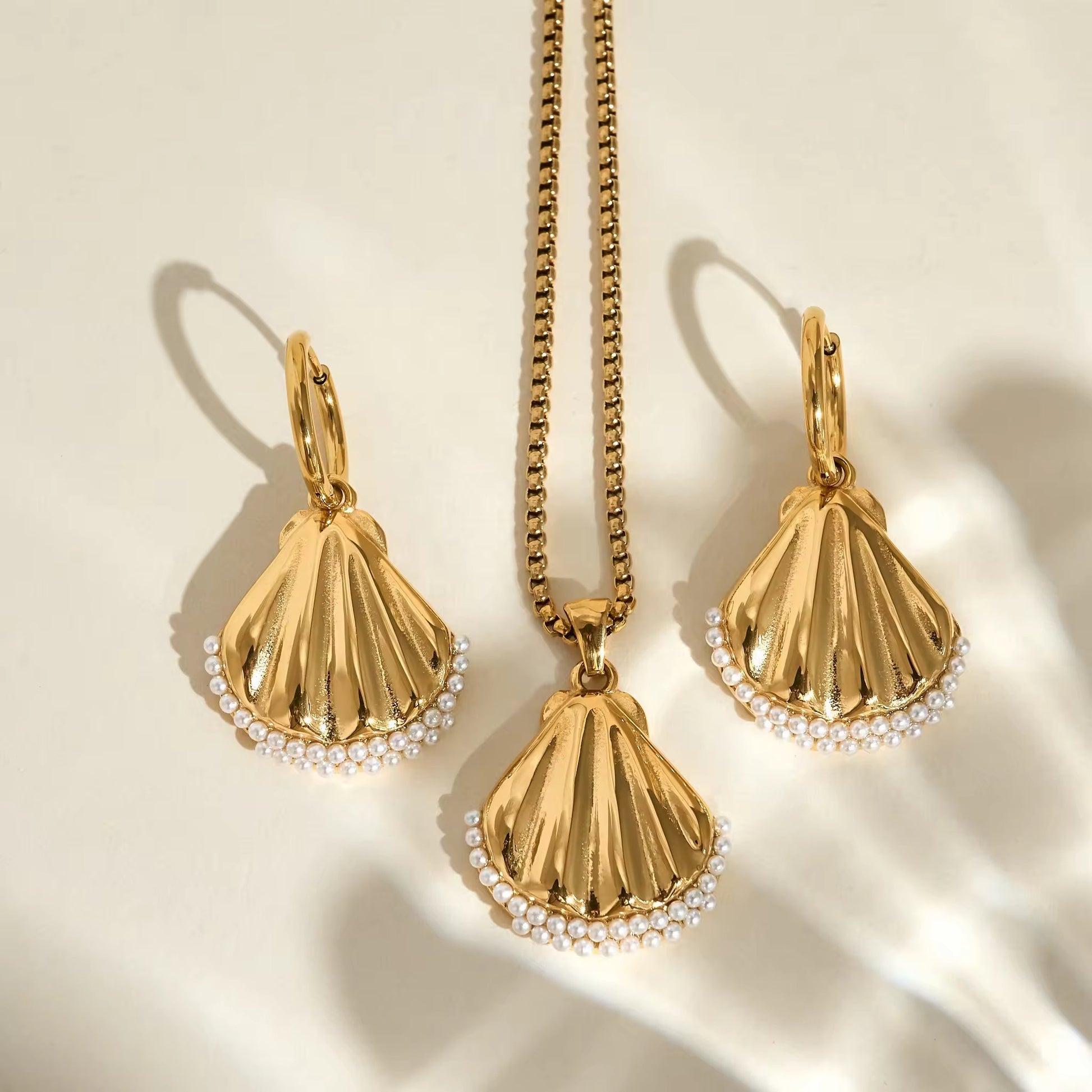 Oceanic Elegance Shell Jewelry Set - 18K Gold Plated with Pearl Accents